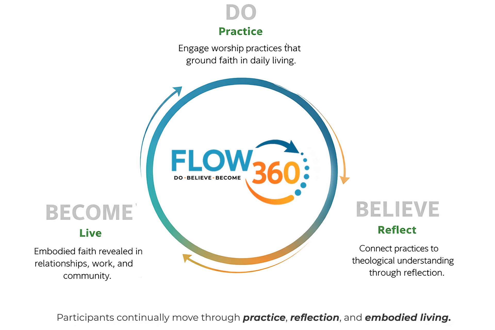 FLOW360 is a year-long discipleship journey within Tributary Life Study focused on holistic spiritual formation through worship, reflection, and lived faith. It invites participants into a sustainable flow of practice, belief, and becoming over time.